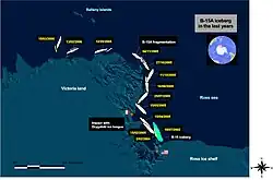 - ↑ B-15A Iceberg Breaks. [w:] Earth Observatory [on-line]. NASA, 2005-11-10. [dostęp 2015-05-02].