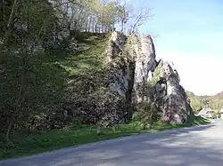 niebieski Szlak Warowni Jurajskich, odcinek od Doliny Prądnika, przez wąwóz Ciasne Skałki do Doliny Będkowskiej[1]