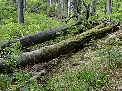 W pobliżu polany Czarna Cyrhel w przeszłości rosła Gruba Jodła – jeden z najpotężniejszych okazów jodły pospolitej w Beskidach. Górny Płaj biegnie mniej więcej granicą regla dolnego i regla górnego, niemal w całości przez las zdominowany przez świerki. W tym miejscu nie prowadzi się gospodarki leśnej, dużo drzew jest powalonych, atakowanych przez huby. Ingerencja człowieka polega jedynie na usuwaniu tarasujących drogę drzew[1].