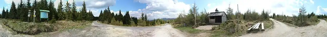 ![]() Smrek i Stóg Izerski widziane z Sinych Skałek (ze wschodu) | |