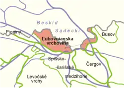 Ścisłym odpowiednikiem regionu Ľubovnianska vrchovina jest w polskiej geografii Pogórze Popradzkie, wyróżnione jako mezoregion w ramach wieloautorskiej regionalizacji fizycznogeograficznej Polski z 2018 roku[1]. Przed 2018 rokiem obszar Pogórza Popradzkiego, a więc zarówno Góry Lubowelskie, jak i Leluchowskie, były w geografii polskiej traktowane, za regionalizacją Jerzego Kondrackiego z 1994 roku, jako integralna część Beskidu Sądeckiego[4].