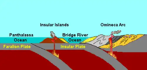 Góry Nadbrzeżne należą do systemu Kordylierów, określane jako Kordyliery Północne lub Kanadyjskie[8]. Za początek formowania uznaje się okres kiedy nastąpiła kolizja płyty kontynentalnej z płytą wulkanicznych wysp nazywanych Insular. Miało to miejsce około 115 mln tat temu[9]. Płyta Insular (ryc. Insular Plate), będąca fragmentem płyty Farallon na skutek zderzenia spowodowała wypiętrzenie i stworzenie aktywnego wulkanicznie łuku Omineca (ryc. Omineca Arc). Także na płycie Insular wzrosła aktywność wulkaniczna spowodowana nasuwaniem się większej płyty Farallon[9]. Cały proces kolizji, łączenia się i wypiętrzania zakończył się około 57 mln lat temu i spowodował wytworzenie się najbardziej aktywnego wulkanicznie obszaru w Kanadzie, będącego południową częścią wewnętrznego (wschodniego) łuku pacyficznego (ang. Coast Range Arc)[2][9]. Najaktywniejszą częścią łuku jest Pas Wulkaniczny Garibaldi, którego najwyższym punktem jest stratowulkan Mount Garibaldi, uznawany za wciąż aktywny i potencjalnie groźny[10][11]. Oryginalne skały pochodzące z płyty Insular są obecne w wielu miejscach wybrzeża Południowej Kolumbii Brytyjskiej oraz w północnej części stanu Waszyngton. Tworzą między innymi Wyspę Vancouver[9].