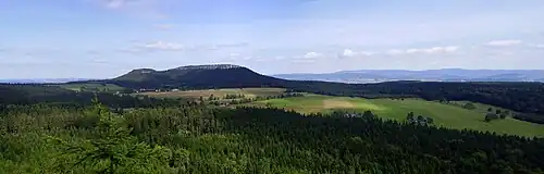 ![]() Widok ze Szczelińca Wielkiego w kierunku Broumowskich Ścian, na drugim planie Koruna | |