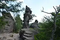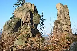 Charakterystycznym elementem strużnickiego krajobrazu są malownicze formy skalne ze skalnym miasteczkiem. Pokryte skałami pasmo oraz zbocza tworzą liczną grupę skalnych i pojedynczych skałek różnego kształtu i wysokości sięgającej do 20 m. Przykładem jest; skalne miasteczko - Starościńskie Skały, Fajka-Dziubek z Rylcem, Diabelski Kościół (niem. Teufelskirche), Pieklisko (Rudawy Janowickie) (niem. St.Br. Ehem Schmiede), (wszystko wchodzi w skład Strużnickich Skał).