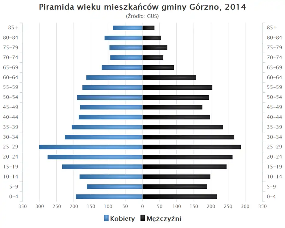 - Piramida wieku mieszkańców gminy Górzno w 2014 roku[5].
