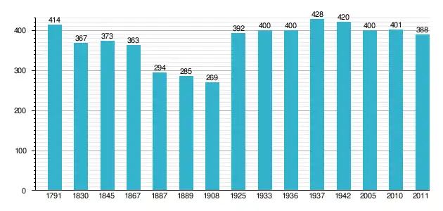Wykres liczby ludności wsi Górzyn na przestrzeni ostatnich trzech wieków.