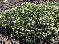 - Promieniste, drobne, 4-krotne, białe, zebrane w luźne grona. Kwitnie wczesną wiosną, jej kwiaty nie przedstawiają większej wartości ozdobnej.