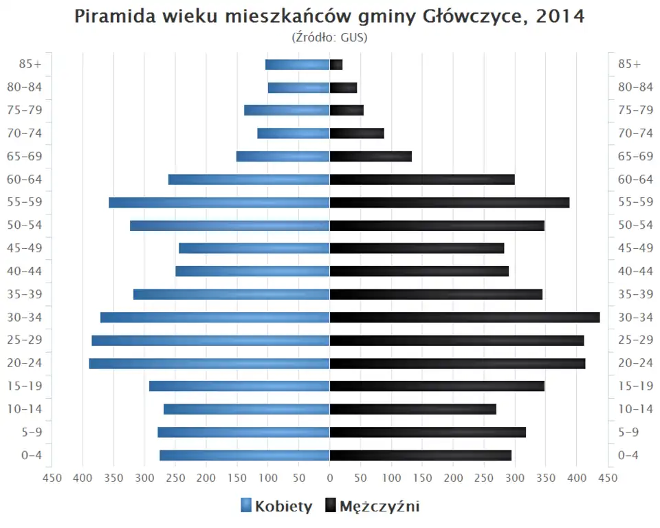 • Piramida wieku mieszkańców gminy Główczyce w 2014 roku[6].