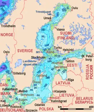 - ↑ Morze Bałtyckie, Cieśniny. W: Komisja Standaryzacji Nazw Geograficznych poza Granicami Rzeczypospolitej Polskiej: Nazewnictwo Geograficzne Świata. T. Zeszyt 10 - Morza i oceany. Warszawa: Główny Urząd Geodezji i Kartografii, 2008, s. 53. ISBN 978-83-254-0462-8.