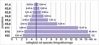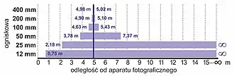 ostrości [m]Głębia