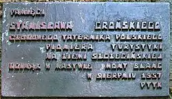 Głaz do 1957 zwany był Kamieniem Świętochowskiego lub Bolkowym Głazem (Kamieniem), na cześć Bolesława Krzywoustego. 23 sierpnia 1959 PTTK umieściło na głazie marmurową płytę pamiątkową poświęconą Stanisławowi Grońskiemu, w 1976 zmieniono ją na metalową[2], z napisem: Pamięci Stanisława Grońskiego, czołowego taternika polskiego, Pioniera turystyki Ziemi Szczecińskiej. Zginął w masywie Mont Blanc w sierpniu 1957 roku