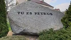 Odkryty przypadkowo we wrześniu 2007 roku podczas wykopów na podziemne garaże jednego z bloków w lubońskim śródmieściu (ul. Wschodnia 21 - teren Nowego Centrum Lubonia) eratyk z ciemnoszarego granitu, przyniesiony został przez lądolód ze Skandynawii. Do wyciągnięcia kamienia z wykopu inwestor wynajął największy dźwig samochodowy w Wielkopolsce o nośności ponad 250 ton. W dniu 26 października 2007 roku w wyniku celowo zorganizowanej akcji, głaz został przetransportowany przez samochód ciężarowy z siedmioosiową naczepą na narożnik ul. Źródlanej i ul. Łącznik, kilka tygodni później stanął na specjalnie wybudowanym fundamencie, w pobliżu nowo powstałej świątyni. Zdaniem proboszcza żabikowskiej parafii, poświęcony ma być papieżowi Janowi Pawłowi II.