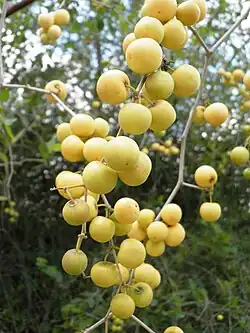 - Owoce są jadalne, czasami nawet słodkawe. Średnia masa jednego owocu wynosi 50 g, owoce zawierają 14,16% cukru i około 1,6% witaminy C. Wytwarza się z nich napój alkoholowy[7].