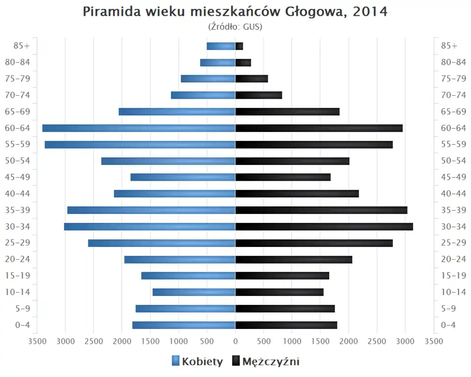 - Piramida wieku mieszkańców Głogowa w 2014 roku[9].