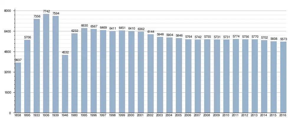 Według danych GUS z 1 stycznia 2024 r. miasto liczyło 5445 mieszkańców[1].