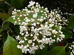 Zimozielony krzew dorastający do ok. 2 m. Kwitnie w maju i czerwcu.