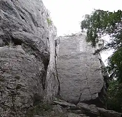 - ↑ Tablica z lokalizacją skał przy wejściu do rezerwatu przyrody Góra Zborów