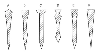 Obie powierzchnie głowni mogą być uformowane na wiele różnych sposobów na części lub całości długości, np. wgłębienia wzdłużne na profilach głowni:
