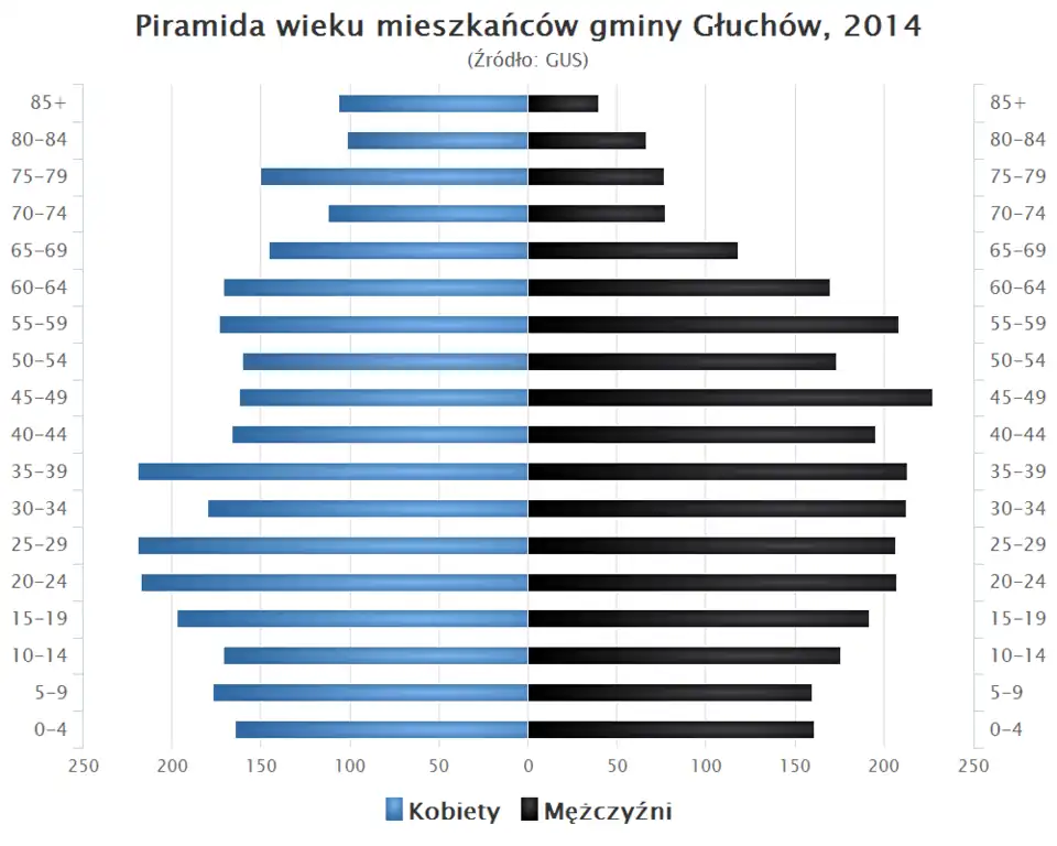 - Piramida wieku mieszkańców gminy Głuchów w 2014 roku[1].