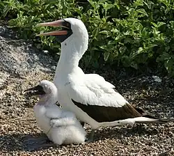 - 1 2 Friesen, V.L., Anderson, D.J., Steeves, T.E., Jones, H. and Schreiber, E.A.. Molecular support for species status of the Nazca Booby (Sula granti). „Auk”. 119 (2), s. 820–826, 2002.