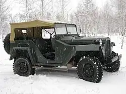 Konstrukcję samochodu opracowano i zbudowano prototyp w ciągu 51 dni - od 3 lutego do 25 marca 1941 roku. Układ napędowy i zawieszenie wywodziły się z samochodu terenowego GAZ-61, lecz podwozie było znacznie krótsze. Silnik wywodził się z lekkiej ciężarówki Ford-AA (GAZ-MM), a część podzespołów z samochodu osobowego GAZ-M1 (tzw. emki) i jej wersji GAZ-11[2]. Zastosowano odkryte nadwozie, podobne do konstrukcji amerykańskiej.