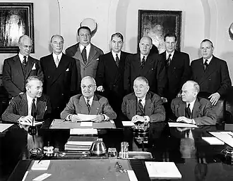 | Sekretarz handlu | Henry Wallace William Averell Harriman Charles W. Sawyer | 1945 – 1946 1946 – 1948 1948 – 1953 |