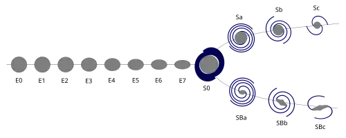 Pod koniec XVIII wieku Charles Messier zgromadził katalog zawierający 109 najjaśniejszych mgławic, później William Herschel wydał katalog gromadzący 5000 mgławic. W roku 1845 William Parsons dzięki konstrukcji nowego teleskopu był zdolny rozróżnić mgławice eliptyczne od spiralnych. Aż do lat 20. XX wieku, do prac Edwina Hubble’a, mgławice te nie były powszechnie uważane za odległe galaktyki. Hubble zidentyfikował pojedyncze gwiazdy zmienne (cefeidy), co pozwoliło mu na pomiar odległości do najbliższych galaktyk. W roku 1926 Hubble zaproponował klasyfikację galaktyk używaną do tej pory.