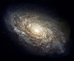 Galaktyka (z gr. γάλα, gála – mleko) – duży, grawitacyjnie związany układ gwiazd, pyłu i gazu międzygwiazdowego oraz niewidocznej ciemnej materii[1]. Typowa galaktyka zawiera od 107 do 1012 gwiazd orbitujących wokół wspólnego środka masy.