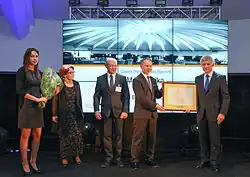 - ↑ Podczas uroczystej gali w dniu 5 listopada 2008 r. w warszawskim hotelu Sofitel Victoria. W tle Jacek Socha – były minister skarbu, od 1995 r. wiceprezes PricewaterhouseCoopers.