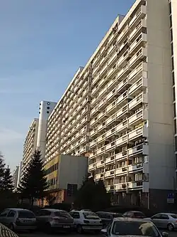 W różnych publikacjach publicystycznych podawana jest liczba pięter budynku jako 16 (tj. 17 kondygnacji nadziemnych)[2][18][34]. Jednak w ewidencji gruntów i budynków liczba kondygnacji budynku mieszkalnego określona jest na 14[41]. Jego wysokość zaś określa się na około 60 m – wysokość strukturalna[2][18] (około 59 m[5]). Główną funkcję obiektu jest mieszkalnictwo[2][18], a długość budynku z częścią mieszkalną na biską 300 m[32]. Budynek został ukształtowany jako wieloklatkowy wieżowiec w układzie galeriowca[2][18][34][35][56], to znaczy budynku, w który wejścia do mieszkań prowadzą z otwartej galerii komunikacyjnej[17][56]. Może w nim mieszkać nawet 2,5 tysiąca osób[34].