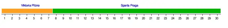 | 1 | Sparta Praga (M) | 30 | 25 | 4 | 1 | 78 | 19 | +59 | 79 | Liga Mistrzów UEFA • II runda kwalifikacyjna | |