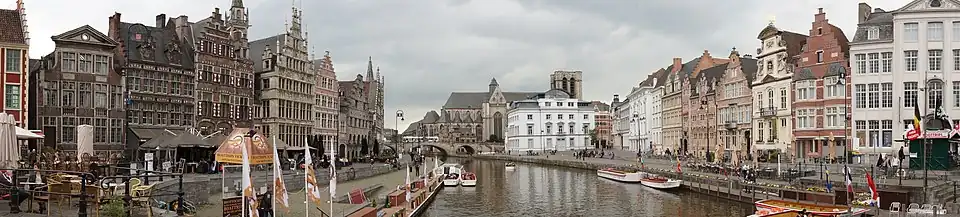 Domy budowane od XVIII w. przez nową arystokrację gościły znamienite postacie, np. w kamienicy Hotel d'Hane-Steenhuyse mieszkał król Francji Ludwik XVIII (w 1815 roku po ucieczce Napoleona z Elby), car Aleksander I (w 1814 roku), król Niderlandów Wilhelm I (w 1816 roku), w hotelu Clemmen przebywał książę Wellington zanim wyruszył pod Waterloo, a w kamienicy Schamp gościła delegacja amerykańska z przyszłym prezydentem Johnem Quincy Adamsem. Delegacja prowadziła rozmowy ze stroną brytyjską i w Gandawie podpisała traktat kończący drugą wojnę brytyjsko-amerykańską, tzw. traktat gandawski.