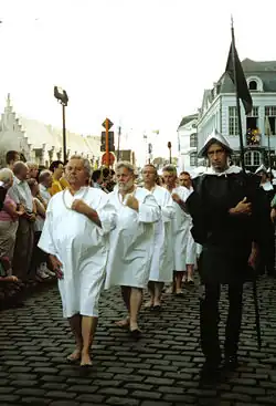 Za nimi podążało 50 największych buntowników, tzw. krzykaczy, również boso, w białych koszulach i ze stryczkami na szyi – na znak, że za bunt przeciwko cesarzowi zasłużyli na szubienicę. Musieli oni oddać cześć cesarzowi – uklęknąć przed nim i błagać o wybaczenie. Do dziś mieszkańców Gandawy nazywa się stroppendragersami – tymi, którzy noszą stryczek. Do dziś także odbywa się co roku w czasie Gentse Feesten w centrum miasta pochód stroppendragersów – tyle, że dziś przejść ze stryczkami na szyi to zaszczyt, którego dostępują jedynie członkowie gildii, bowiem wydarzenie to urosło do miana symbolu nieugiętości Gandawy[4].
