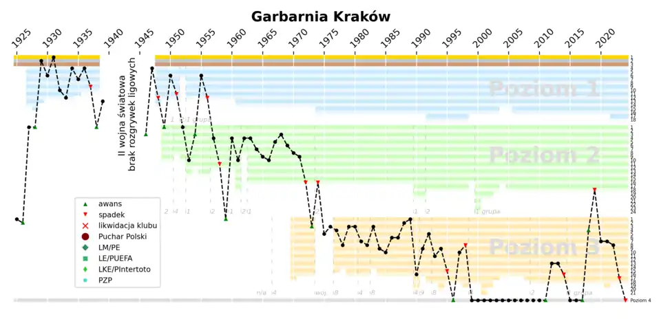 - ↑ Garbarnia Kraków, Karta historii: Awans do pierwszej ligi [online], garbarnia.krakow.pl, 28 czerwca 2021 [dostęp 2023-07-25] (pol.).