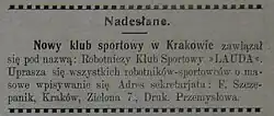 - ↑ Norbert Tkacz, Karta historii: Brązowi kibice. Przedwojnie. [online], RKS Garbarnia Kraków, 11 sierpnia 2022 [dostęp 2023-08-19] (pol.).