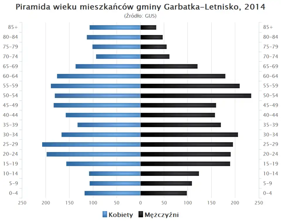 - Piramida wieku mieszkańców gminy Garbatka-Letnisko w 2014 roku[5].