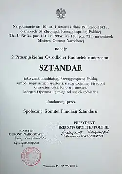 - ↑ Decyzja Ministra Obrony Narodowej oraz rozkazu nr 0-418/org/p-5 z dnia 30 października 2002 r. Szefa Sztabu Generalnego WP.