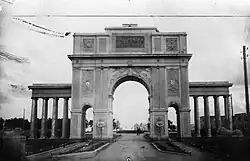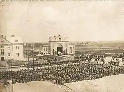 Łuk triumfalny, wzniesiony w 1929 roku, wyznaczał paradny wjazd na terytorium garnizonu od dworca w Mołodecznie. Został ozdobiony licznymi płaskorzeźbami i posągami rycerzy i lwów. W zwieńczeniu łuku znajdowała się mała kapliczka, gdzie kapelan pułku błogosławił żołnierzy podczas uroczystości wojskowych.
