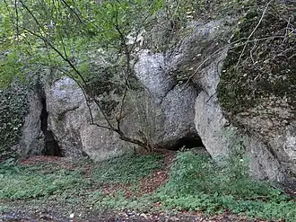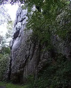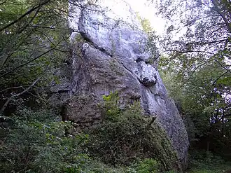 - ↑ Na podstawie tablicy informacyjnej zamontowanej przy skałach