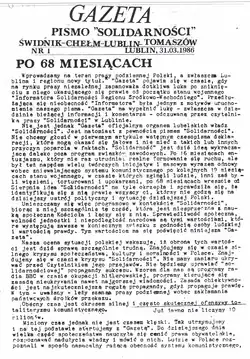 - "Gazeta" z podtytułem "Pismo «Solidarności». Puławy–Świdnik–Tomaszów–Zamość". Numery 7–18.