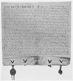 - ↑ „Zamierzając przeto założyć miasto w Krakowie i zgromadzić tu ludzi z różnych stron świata, wpajamy mocno w uszy każdemu z osobna, tak współczesnym, jak i przyszłym, że my - Bolesław z bożej łaski, książę Krakowa i Sandomierza, razem z dostojną matką naszą Grzymisławą, i szlachetną małżonką naszą Kunegundą, miasto to zakładamy na tym samym prawie, na jakim założone zostało miasto Wrocław, tak aby nie to co tam się dzieje, lecz co według prawa i wzoru miasta Magdeburga dziać się powinno, było zmienione, aby jeśli kiedyś byłaby co do tego jakaś wątpliwość, do pisanego prawa wątpiący się odwoływali” [w:] Akt lokacji Krakowa, Archiwum Państwowe w Krakowie