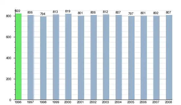 Według danych z dnia 31 grudnia 2012, wieś zamieszkiwało 879 osób, w tym 442 kobiety i 437 mężczyzn[7].