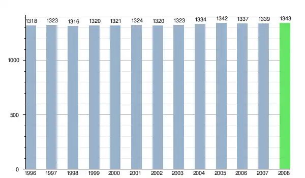Według danych z dnia 31 grudnia 2012, wieś zamieszkiwało 1339 osób, w tym 698 kobiet i 641 mężczyzn[6].