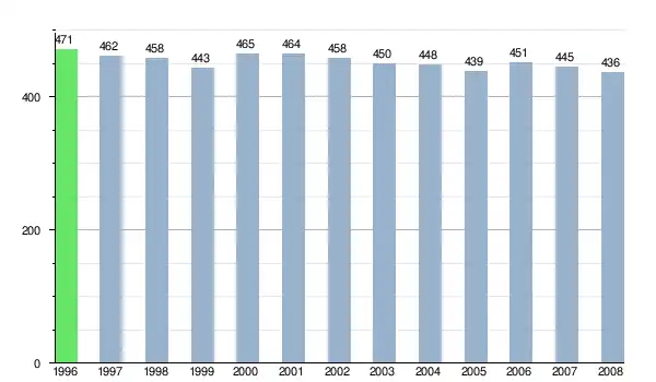 Według danych z dnia 31 grudnia 2012, wieś zamieszkiwały 454 osoby, w tym 242 kobiety i 212 mężczyzn[6].