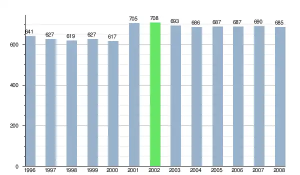 Według danych z dnia 31 grudnia 2012, wieś zamieszkiwało 705 osób, w tym 365 kobiet i 340 mężczyzn[6].
