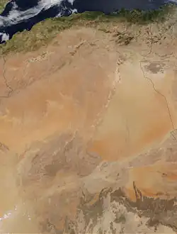 Temperatury uzależnione są od szerokości geograficznej i od wysokości słońca. Pomijając masywy Atlasu, średnia temperatura rośnie w kierunku południowym. Zmieniają się także amplitudy.