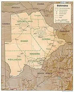 Botswana – średniej wielkości państwo w środkowej części Afryki Południowej, rozłożone po obu stronach zwrotnika Koziorożca. Botswana jest krajem śródlądowym. Do roku 1966 kraj był kolonią brytyjską pod nazwą Beczuana. Uzyskał niepodległość jako jedno z najbiedniejszych państw świata. Sytuację zmieniło odkrycie złóż diamentów. Jednak wciąż jest to kraj słabo rozwinięty, leżący w suchej kotlinie Kalahari.