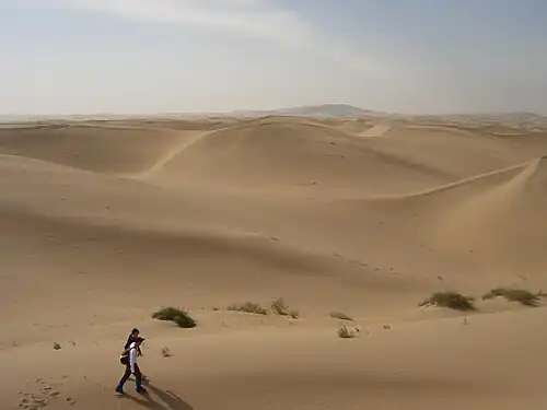 Obszary północne, przy granicy z Mongolią, to strefy klimatu umiarkowanego suchego o wybitnych cechach kontynentalnych. Obszary te cechują się bardzo skąpymi opadami deszczu. Średnia roczna opadowa nie przekracza 200 mm. W wielu miejscach, gdzie występują pustynie, opady utrzymują się na poziomie 50 mm. rocznie. Temperatury są skrajne, zimą średnie wartości wahają się od -20 do 0 °C. Częstym zjawiskiem są silne wiatry wiejące znad Syberii, które obniżają drastycznie temperaturę. Latem jest całkiem inaczej, temperatury są dość wysokie i średnie wartości latem wynoszą nawet 35 °C. Na pustyniach występują upały gdzie w ciągu dnia występuje upał do 40, a nawet 50 °C, a w nocy występują spadki nawet do 0 °C.