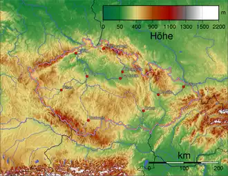 Czechy są krajem wyżynno-górzystym, gdzie obszary nizinne, głównie w postaci dolin rzecznych i obniżeń zajmują jedynie 24%. Obszar Czech zajmują dwie jednostki strukturalne, do których należą Masyw Czeski na zachodzie i fragment Karpat na wschodzie. Obszary wyżynne leżące między 300 a 800 m n.p.m. zajmują 72% powierzchni kraju, zaś góry tylko 4%.
