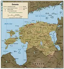 - General overview of Estonian nature, Location and natural conditions, Location. W: Estonica, Encylopedia about Estonia. Estonian Institute. [dostęp 2019-06-25]. (ang.).